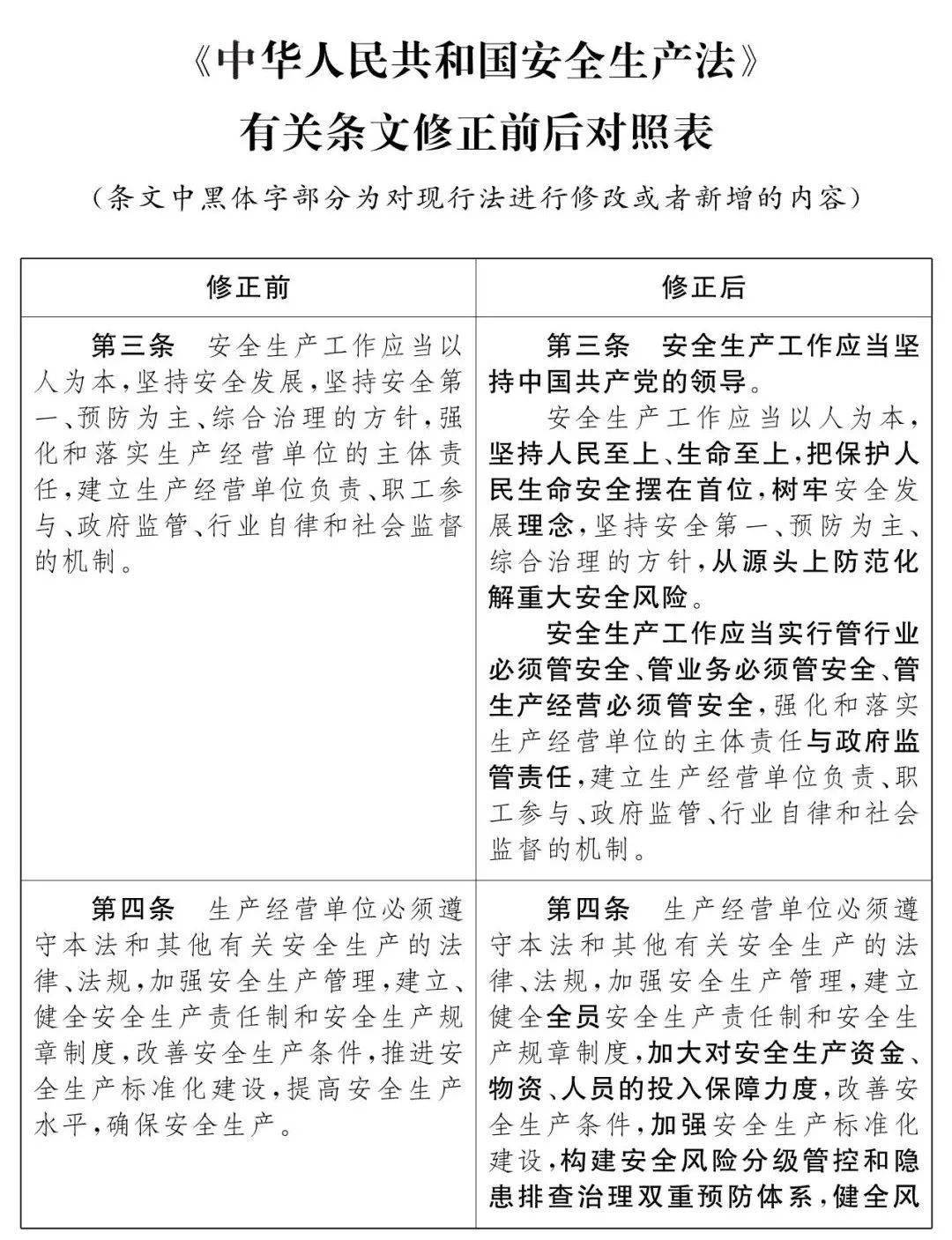 2021新《安全生产法》修改条文对比