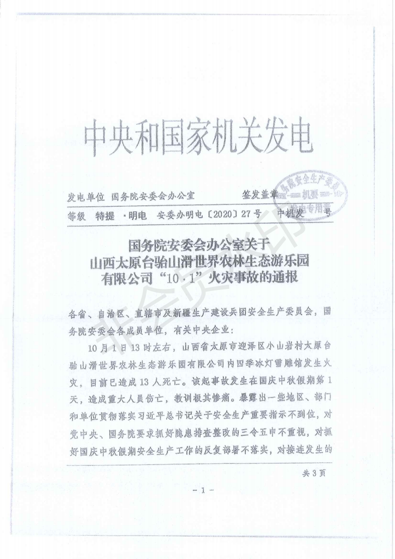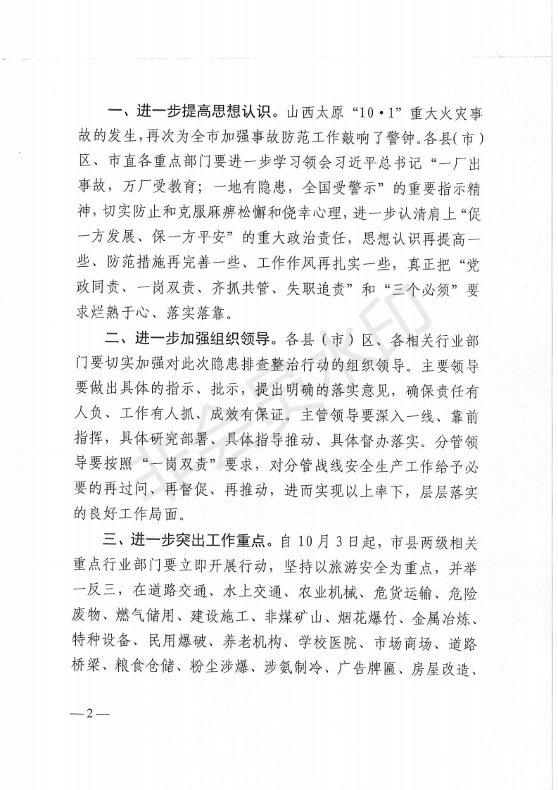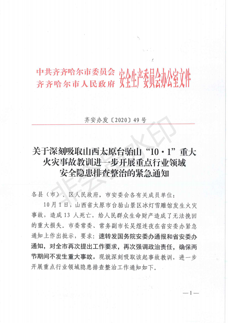 关于深刻吸取山西太原台骀山“10·1”重大火灾事故教训进一步开展重点行业领域安全隐患排查整治的紧急通知
