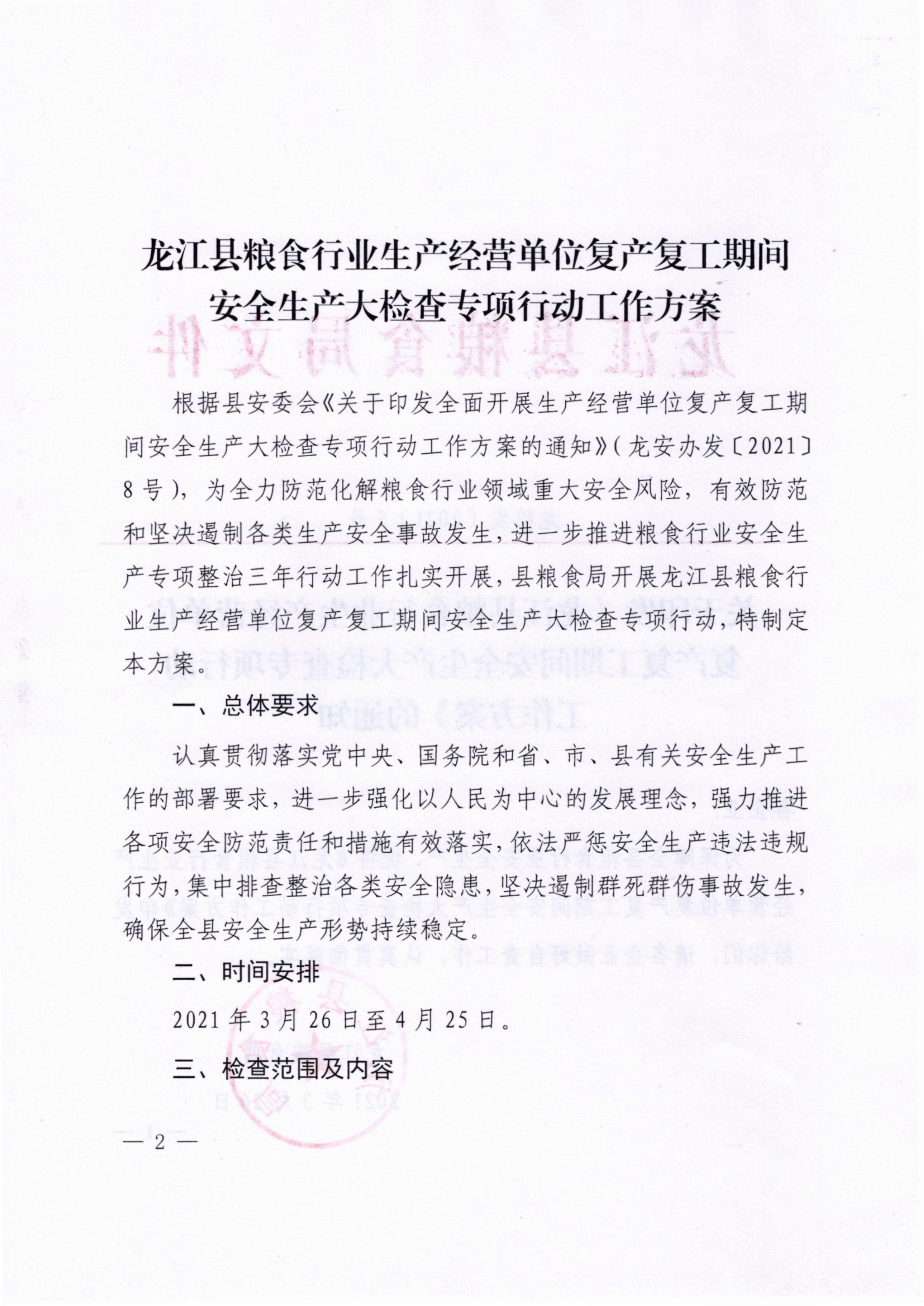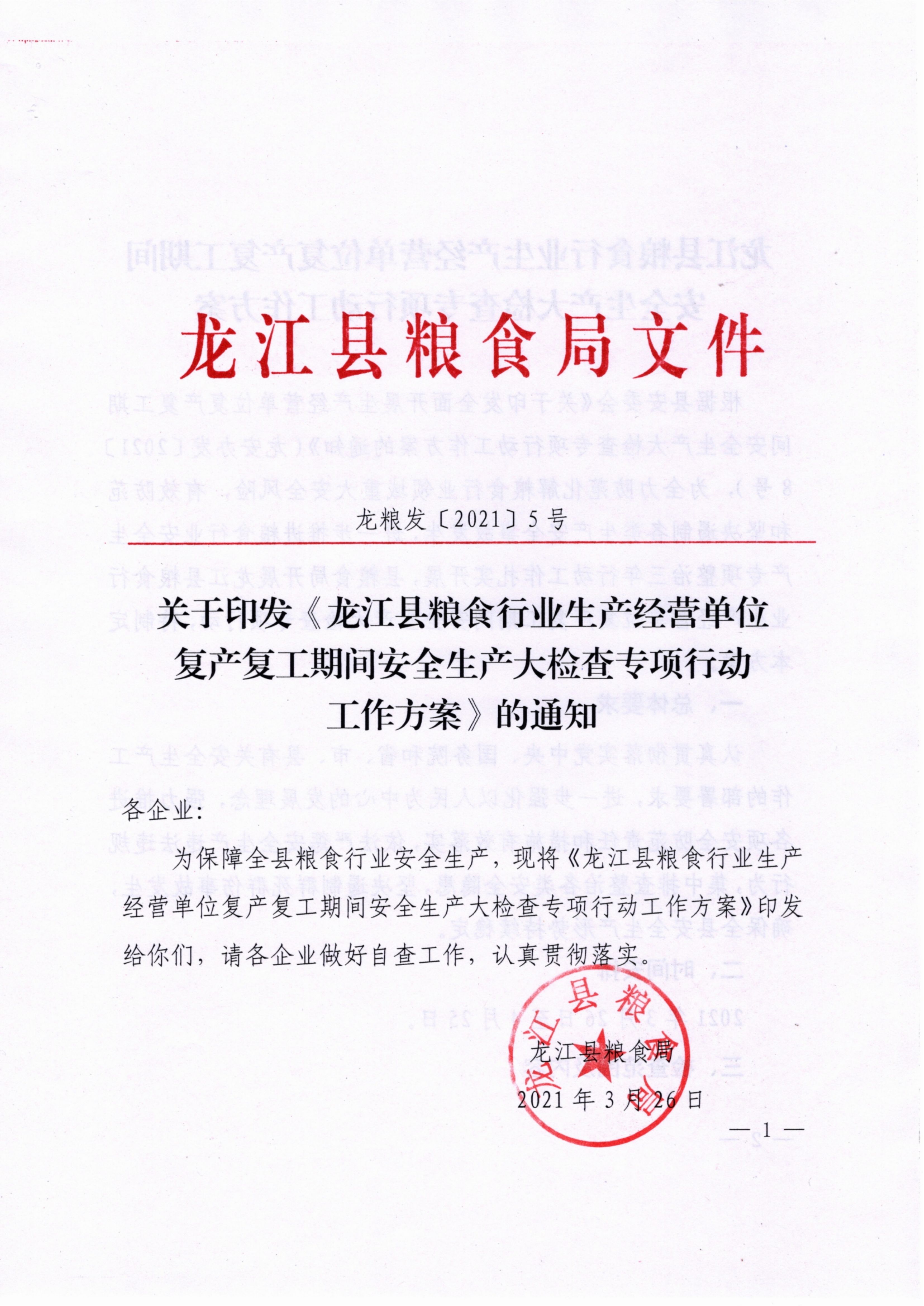关于印发《龙江县粮食行业生产经营单位复产复工期间安全生产大检查专项行动工作方案》的通知