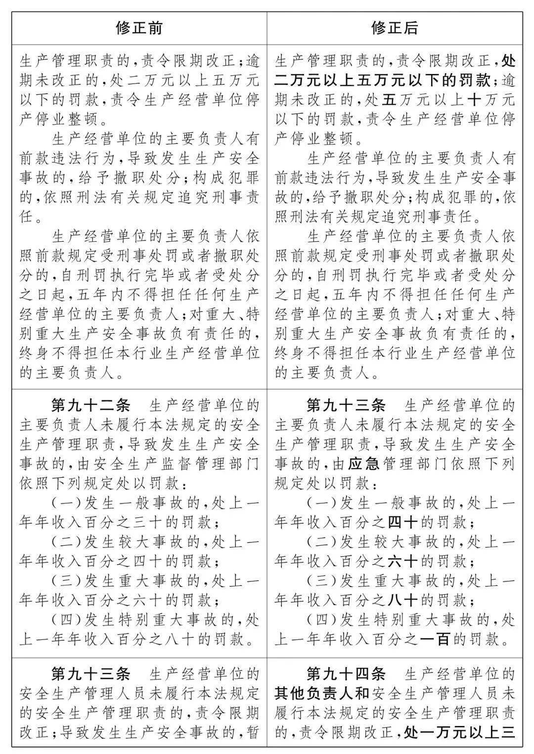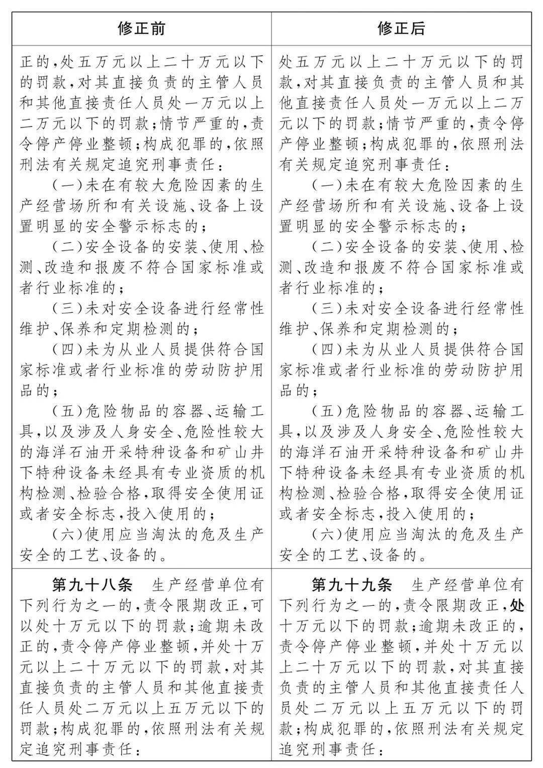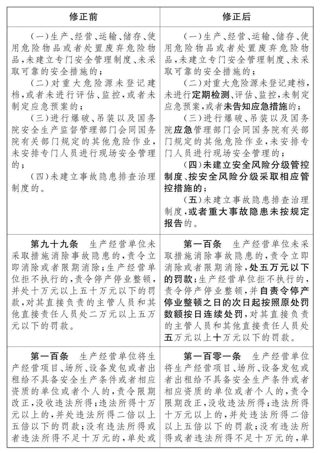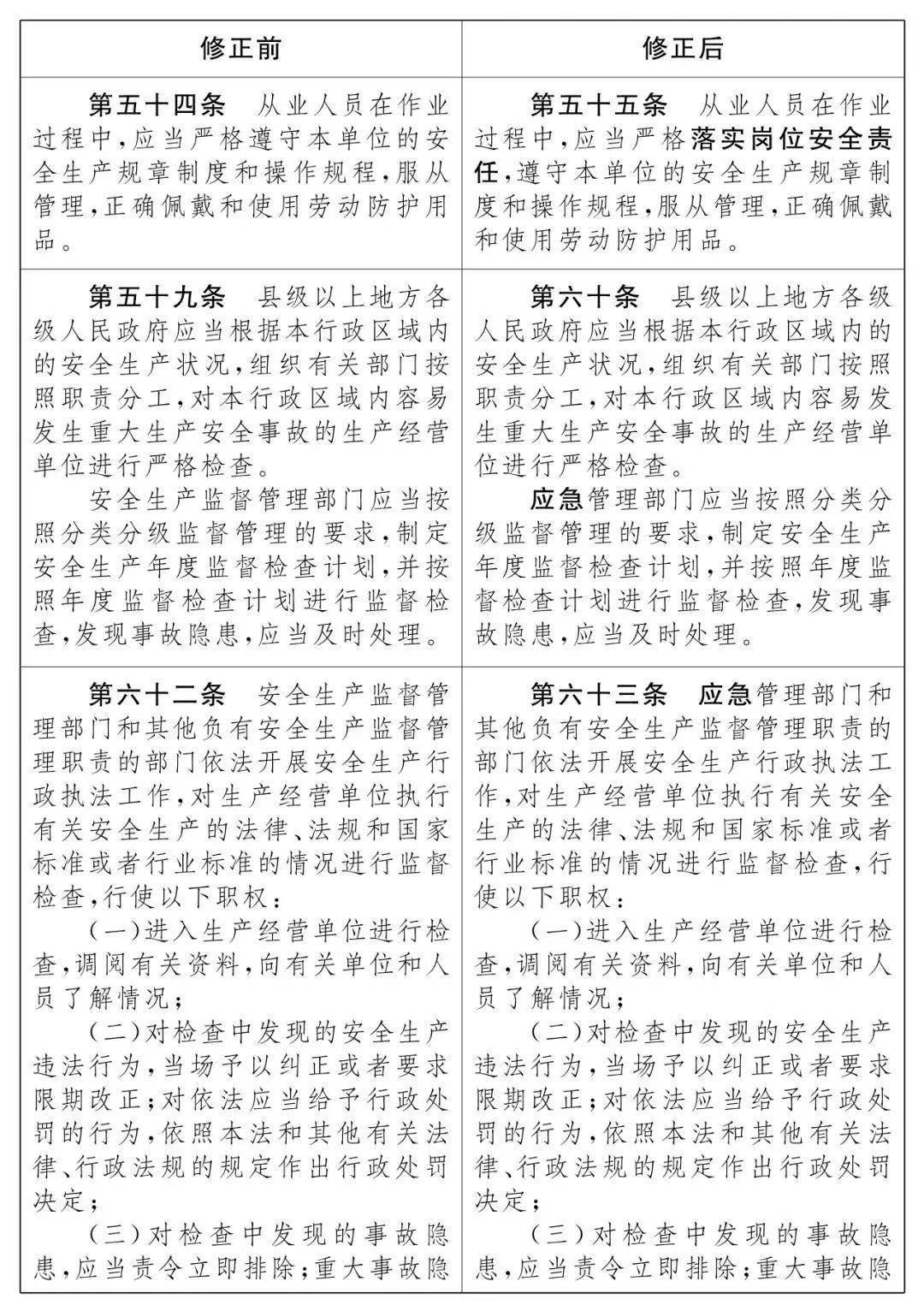 2021新《安全生产法》修改条文对比