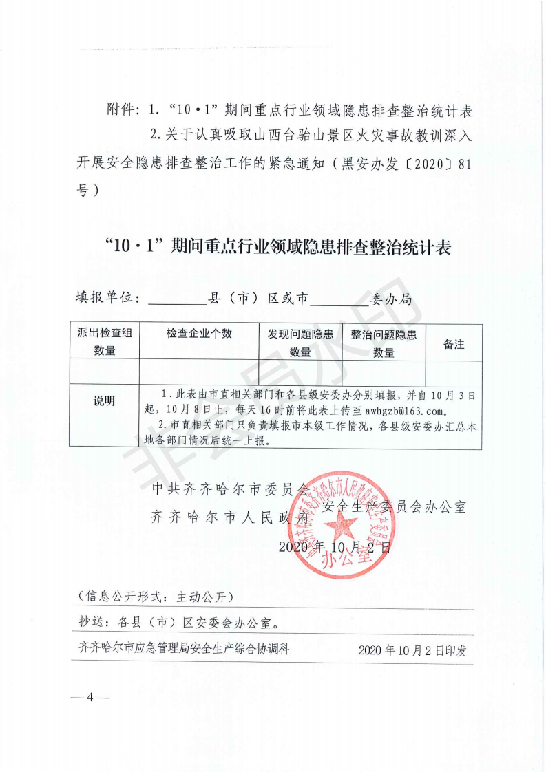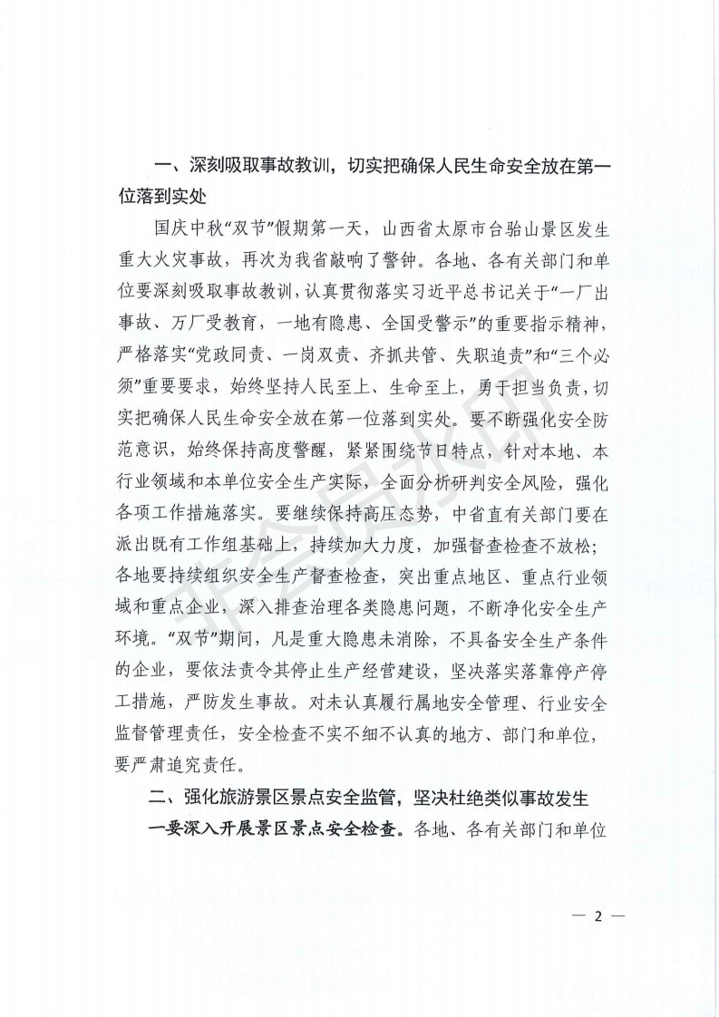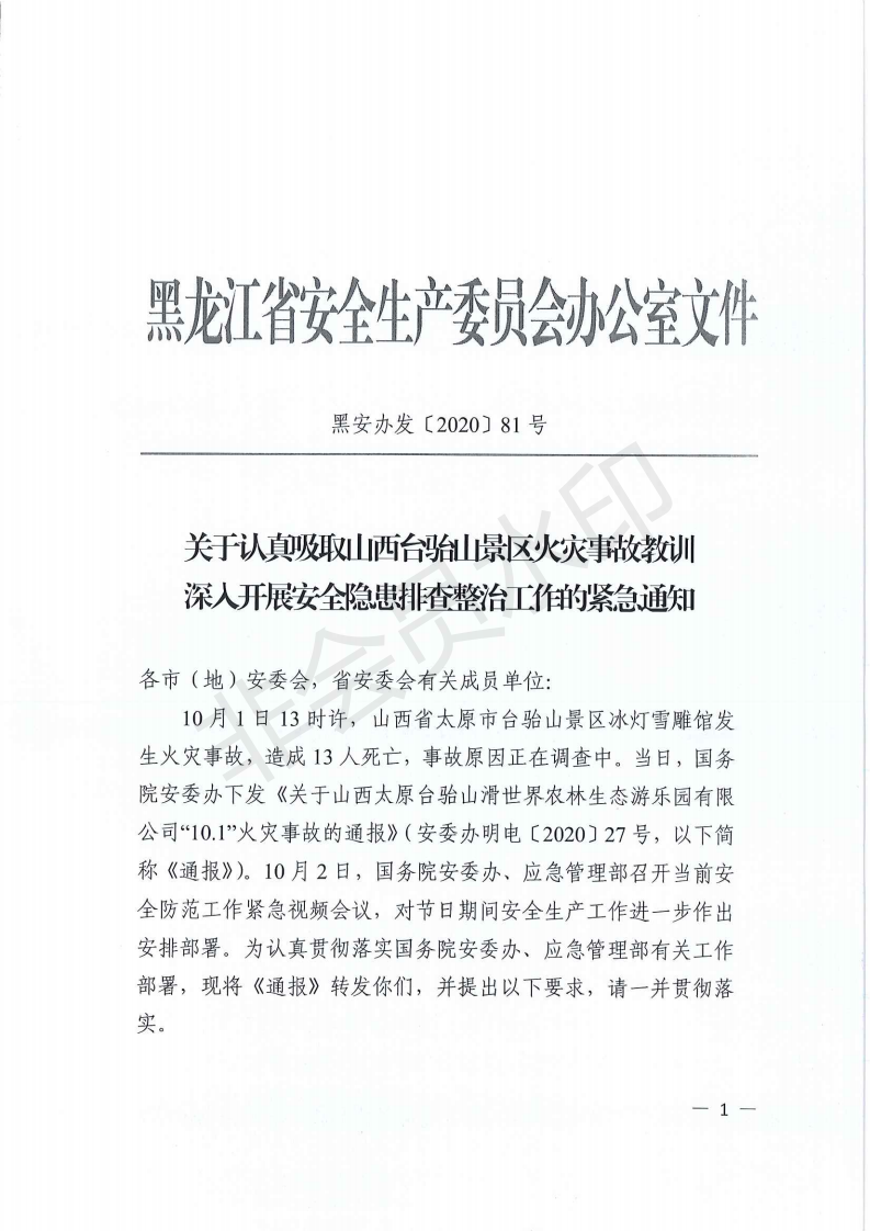 关于深刻吸取山西太原台骀山“10·1”重大火灾事故教训进一步开展重点行业领域安全隐患排查整治的紧急通知